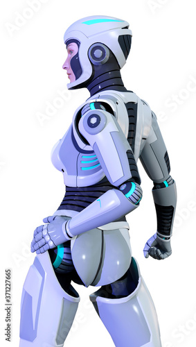 3D Rendering Female Robot on White