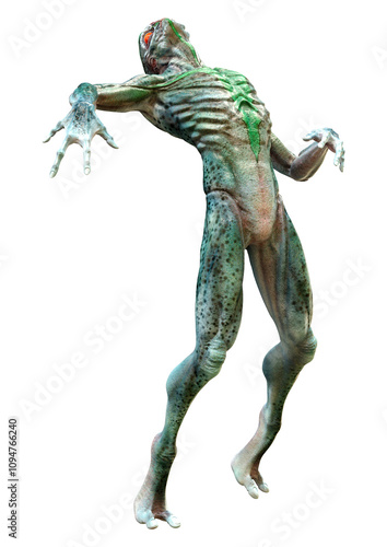 3D Rendering Green Alien on White