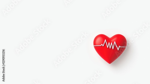 3d rendering of a red heart with a white pulse line across, representing healthcare and wellbeing