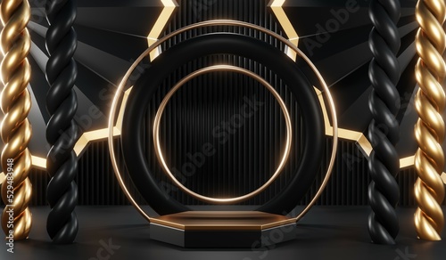cosmetic, present, composition, floor, abstract, room, racked, exhibition, object, commercial, luxury, geometric, studio, advertising, deluxe, blank, premium, luxurious, classic, showroom, sale, rendering, illustration, space, scene, platform, gold, product, display, stage, cylinder, empty, presentation, three-dimensional, dais, showcase, show, black, architecture, dark, modern, decoration, interior, design