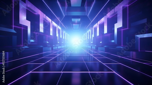 3d rendering of purple and blue abstract geometric background. Scene for advertising, technology, showcase, banner, game, sport, cosmetic, business, metaverse. Sci-Fi Illustration. Product display