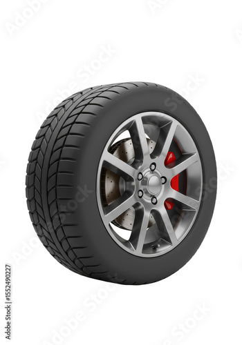 3d Rendering of Tire and Wheel Auto Equipment on Transparent Background