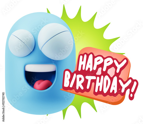 3d Rendering Smile Character Emoticon Expression saying Happy Bi