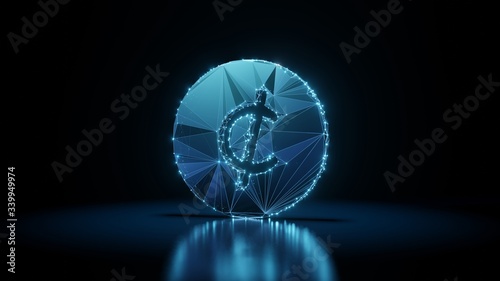 3d rendering wireframe neon glowing symbol of cent on black background with reflection
