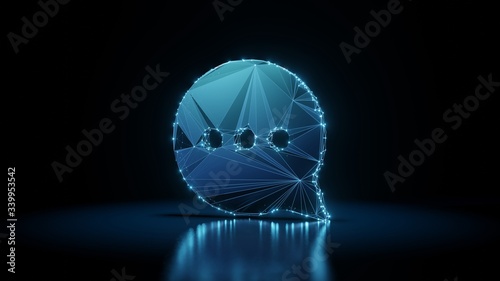 3d rendering wireframe neon glowing symbol of rounded chat bubble on black background with reflection
