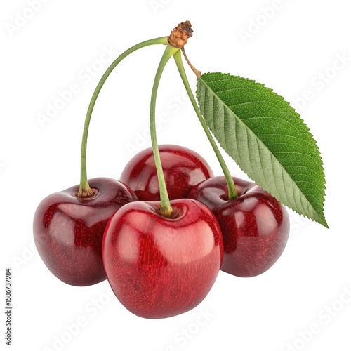 three-dimensional, cherry, fruit, red, berry, food, fresh, healthy, leaf, realistic, render, isolated, on, transparent, background, glossy, sweet, organic, photo, studio, shot, high, detail, macro, vitamin, summer, culinary, ingredient, clean, design, stock, asset, visual, botanical