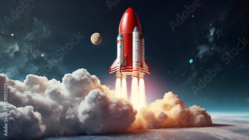3D rocket in space Business startup and business growth concept, 3D rendering. on white background. Ai generative