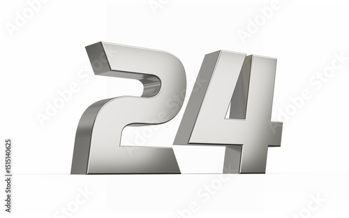 3d Silver number 24 Twenty four sleek metallic look isolated on white background, 3d illustration