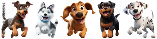 design element, illustration, transparent, character, collection, animation, animated, animal, cartoon, cut-out, friends, playful, sitting, mammal, happy, puppy, cute, jump, pet, dog, set, three-dimensional