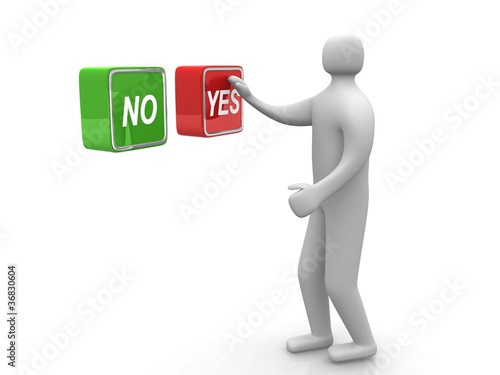 three-dimensional, abstract, answer, balance, business, buttons, cartoon, character, choice, communication, concept, conceptual, confirm, guy, icon, idea, illustration, image, isolated, man, mark, middle, no, people, person, positive, presentation, push, question, render, right, shape, signs, solution, success, switch, symbol, word, yes