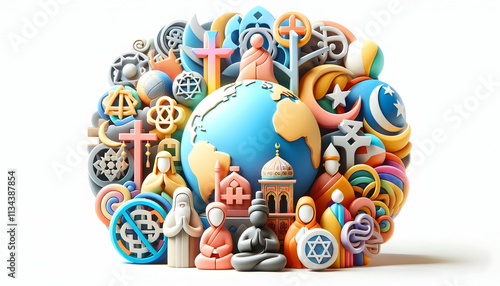 3D Soft Abstract Spiritual Harmony concept as Soft abstract digital art depicting spiritual harmony among diverse religions World Religion Day inspirational banner as 3D Icon isolated white background