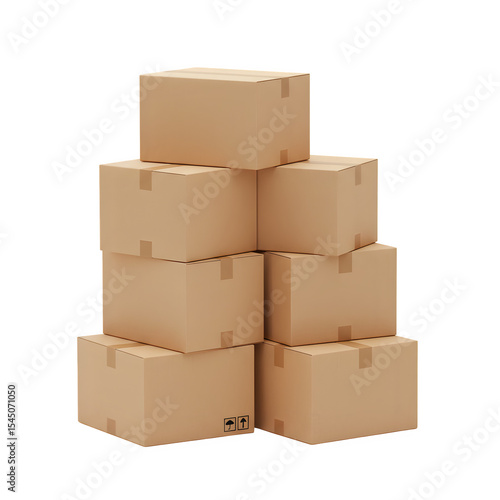 3D Stack of Cardboard Boxes for Packaging, Delivery, and Logistics, Isolated on White or Transparent Background