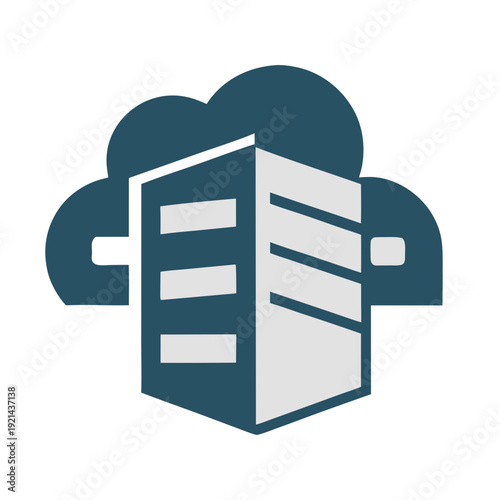 3D Style Tech Logo with Server and Cloud Symbols Variant Transparent Background