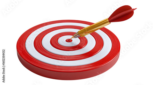 3D target with dart hitting the center, symbolizing success, cartoon plastic style, isolated on transparent background