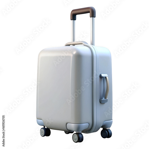 three-dimensional, suitcase, baggage, travel, bag, case, wheeled, handle, transport, vacation, journey, roller, storage, container, modern, plastic, light, white, clean, object, design, asset, render, graphic, element, isolated, stock, commercial, transparent, background