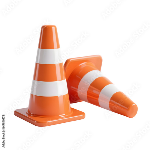 3d VLC media traffic cones icon in white transparent png background cutout