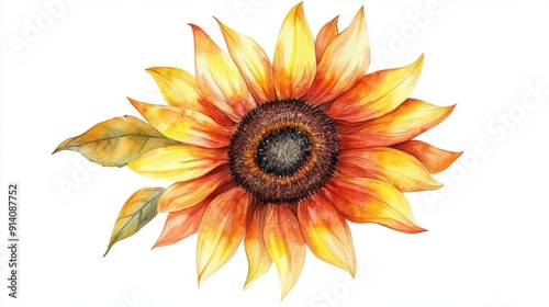 3D Watercolor Sunflower: Yellow & Orange Detail - Download