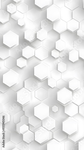 3D White Hexagons on White Background, Abstract Image, Texture, Pattern, Wallpaper, Cover and Screen of Smartphone, Cell Phone, Computer, Laptop, 9:16 and 16:9 Format