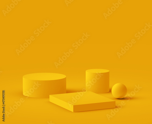 3d yellow podium minimal studio background. Abstract 3d geometric shape object illustration render.Display for summer holiday product.