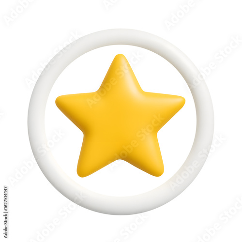 3D yellow star badge icon with white circular frame in minimal style, isolated on transparent background