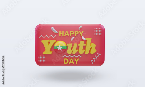 3d youth day Myanmar flag rendering front view