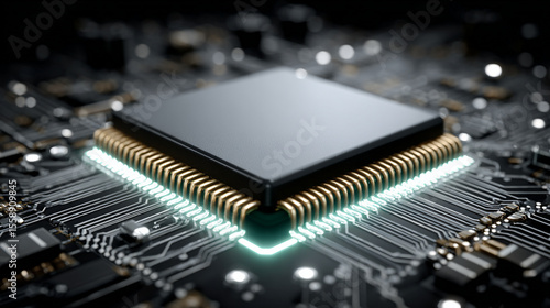 3D-rendered digital illustration of a glowing processor chip with neon circuitry and a futuristic tech vibe.