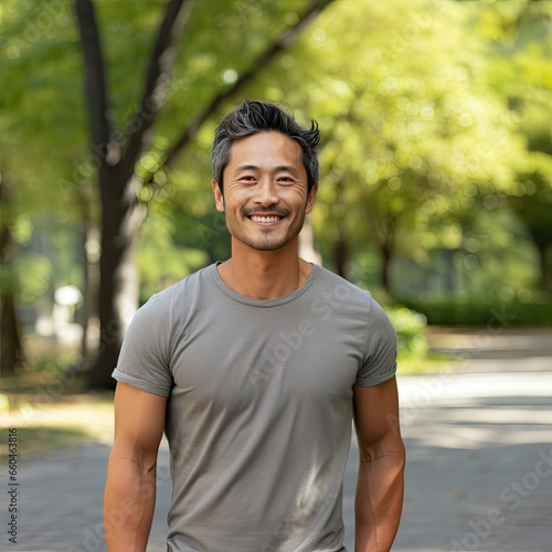 40s Asian Man Diverse T Shirt Model Mockup Blank Grey Gray Shirt