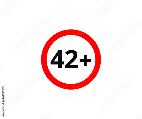 42+ restriction flat sign isolated on white background. 42 plus Age limit symbols
