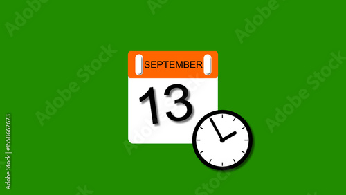 4K calendar animation September date 13 2025 illustration . black background clean and stunning 4k illustration .