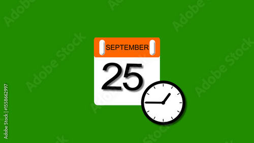 4K calendar animation September date 25 2025 illustration . black background clean and stunning 4k illustration .
