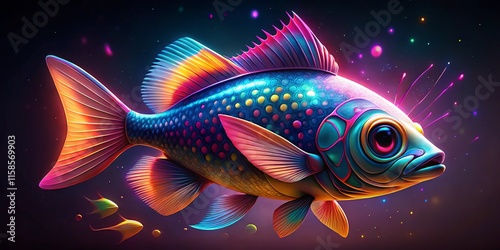 neon, fish, cartoon, character, composition, vibrant, glowing, dark background, playful, expressive, design, underwater, aquatic, colourful, bright, illustration, digital artwork, graphic design, fantasy, whimsical, cute, art, image, picture, artwork, rendering, hi-res, detailed, polished, stunning, amazing, beautiful, spectacular, dynamic, movement, swimming, fin, scale, eye, mouth, scene, background, light, shadow, abstract, surreal