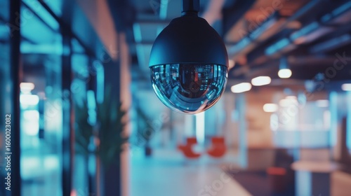 4K resolution CCTV mounted in modern office, lens detail in focus, blurred background