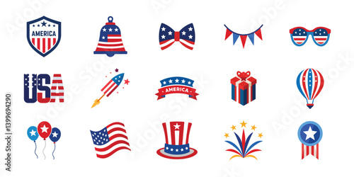 4th July, American Independence Day design vector illustration set. Collection of graphic elements isolated on white background