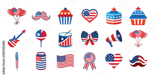 4th of July 18 Vector set, American Independence Day vector elements on white background