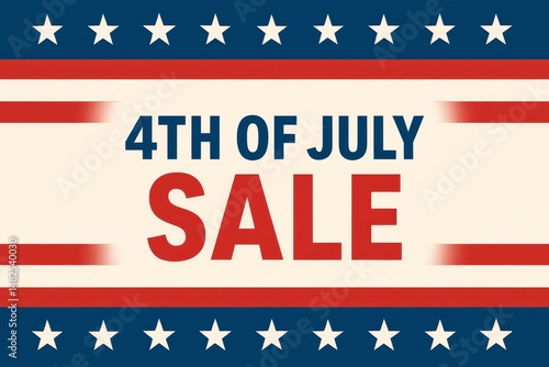 4th of July sale banner with stars and red, white, blue stripes for Independence Day advertising and promotion