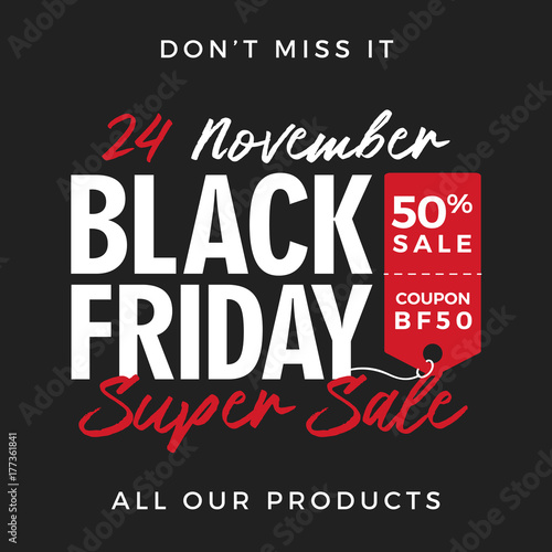 50% OFF Black Friday Super Sale Promotion with Price Tag Element Inscription Design Template Banner, Badge, Sticker, Cover, Poster, Flyer