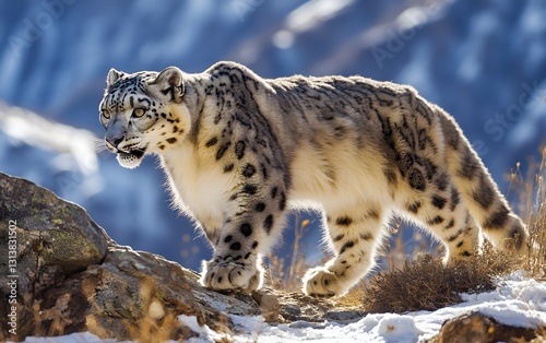 6. A snow leopard gracefully walking through the Himalayan mountains