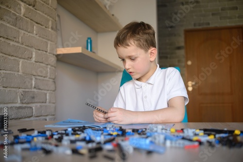 6 years boy playing with technic plastic blocks indoor