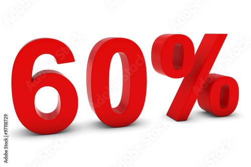 60% - Sixty Percent Red 3D Text Isolated on White