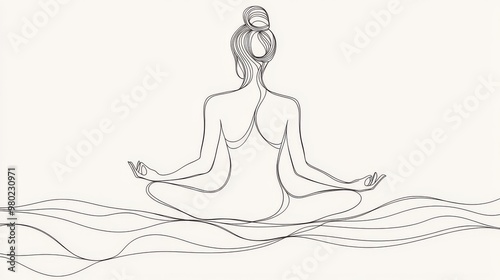 artistic, vector, illustration, woman, lotus, pose, yoga, drawn, single, continuous, line, capturing, essence, minimalism, fluidity