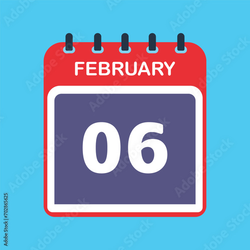 6th February calendar icon. Calendar template for the days of February. vector illustrator.