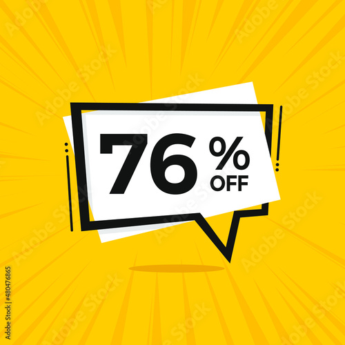 76% off. Discount 76 percent. Yellow banner with floating balloon for promotions and offers.