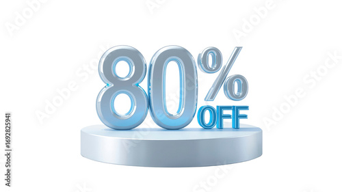 80% Off Sale Discount Promotion - 3D Render of Blue Silver Numbers on Pedestal