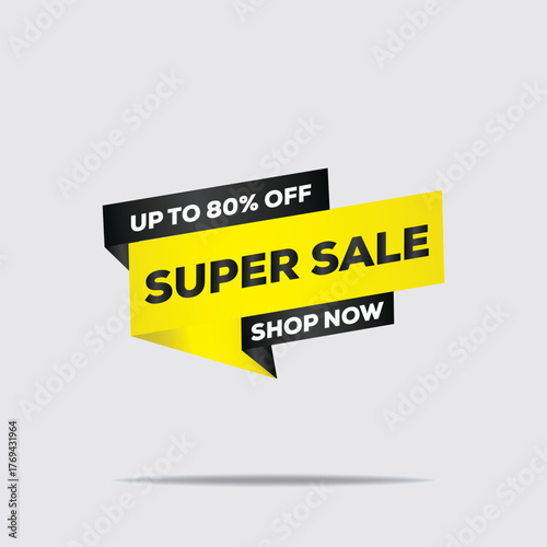 80% Sale Banner – Black and Yellow Discount Label – Bold Super Sale Promotion Graphic – Vector Illustration
