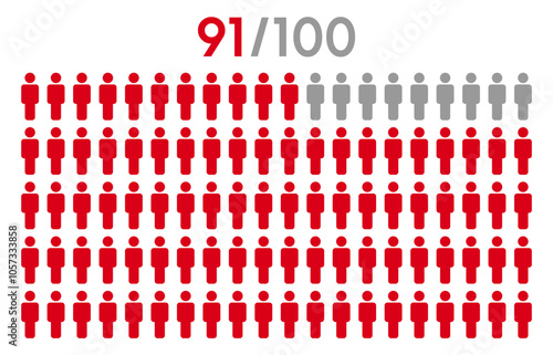 91 percent people icon graphic vector.Population demography concept with man icons.People infographic percentage chart.