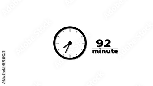 92 minutes clock icon illustration. Stopwatch timer clock number. Time management concept.