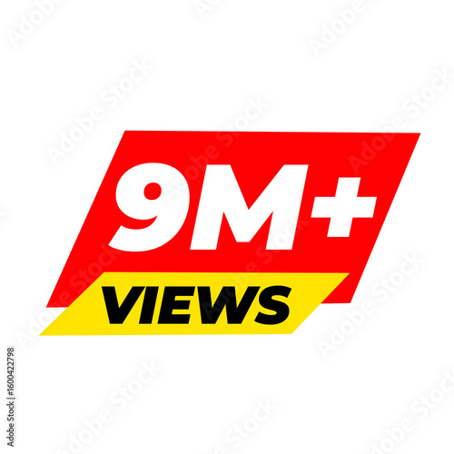 9M+ views png, viral trending icon, red colour badge, social media tag,