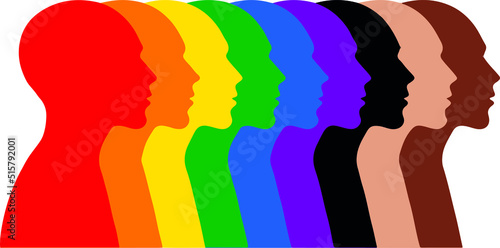 A color silhouettes of people, Conception of psychology, artificial and cosmic mind, mental health. Concentric vector illustration isolated on white background