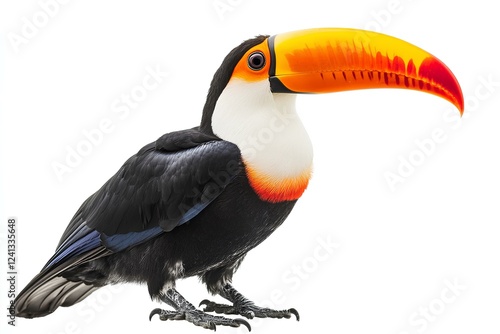 bird, toucan, animal, beak, nature, hornbill, wildlife, tropical, wild, yellow, exotic, black, colourful, white, jungle, orange, feather, isolated, brazil, tree branch, colours, red, bill