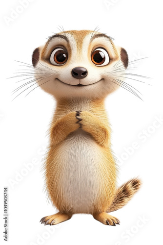 A 3D cartoon meerkat character, isolate on white background, adding a fun and whimsical touch. cutout png